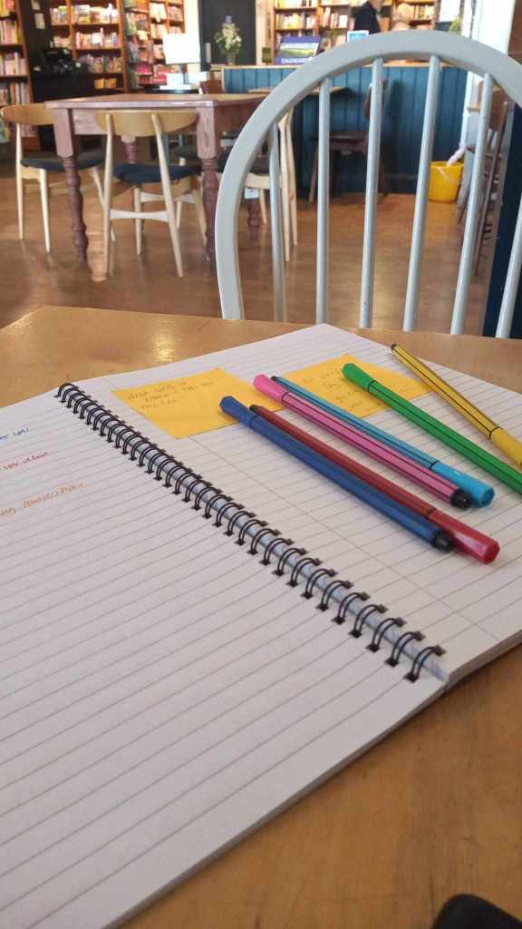 It needed to be colour, and so I went to the stationers and bought a cheap pad, and pens and found what became my favourite table in the Darlington Waterstones cafe. Over that August Bank holiday 2023, in 4 whole days I wrote and wrote and wrote, enjoying every moment, and this began the flow, and it just continued.